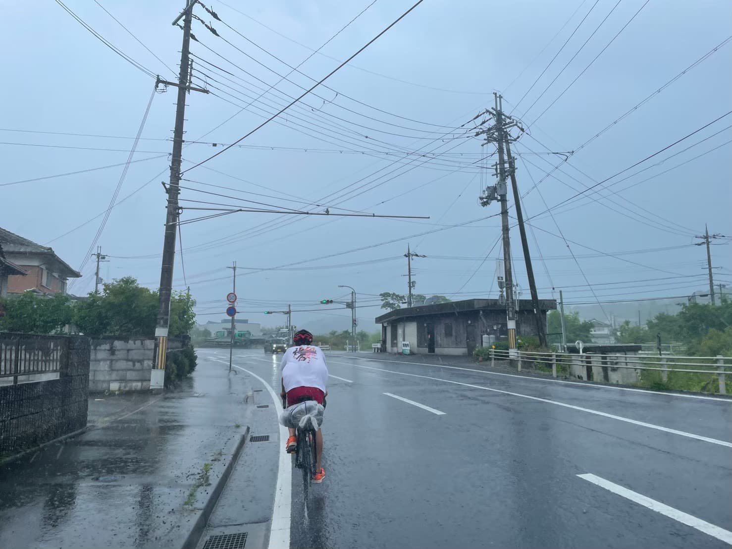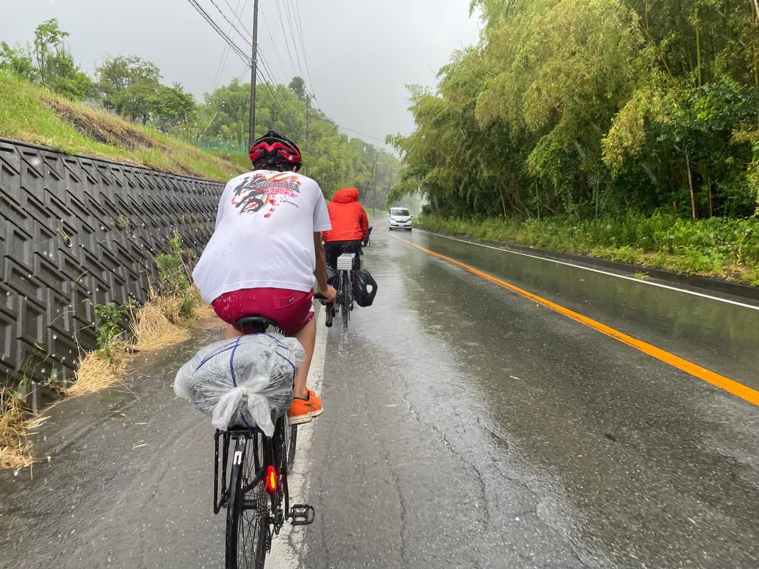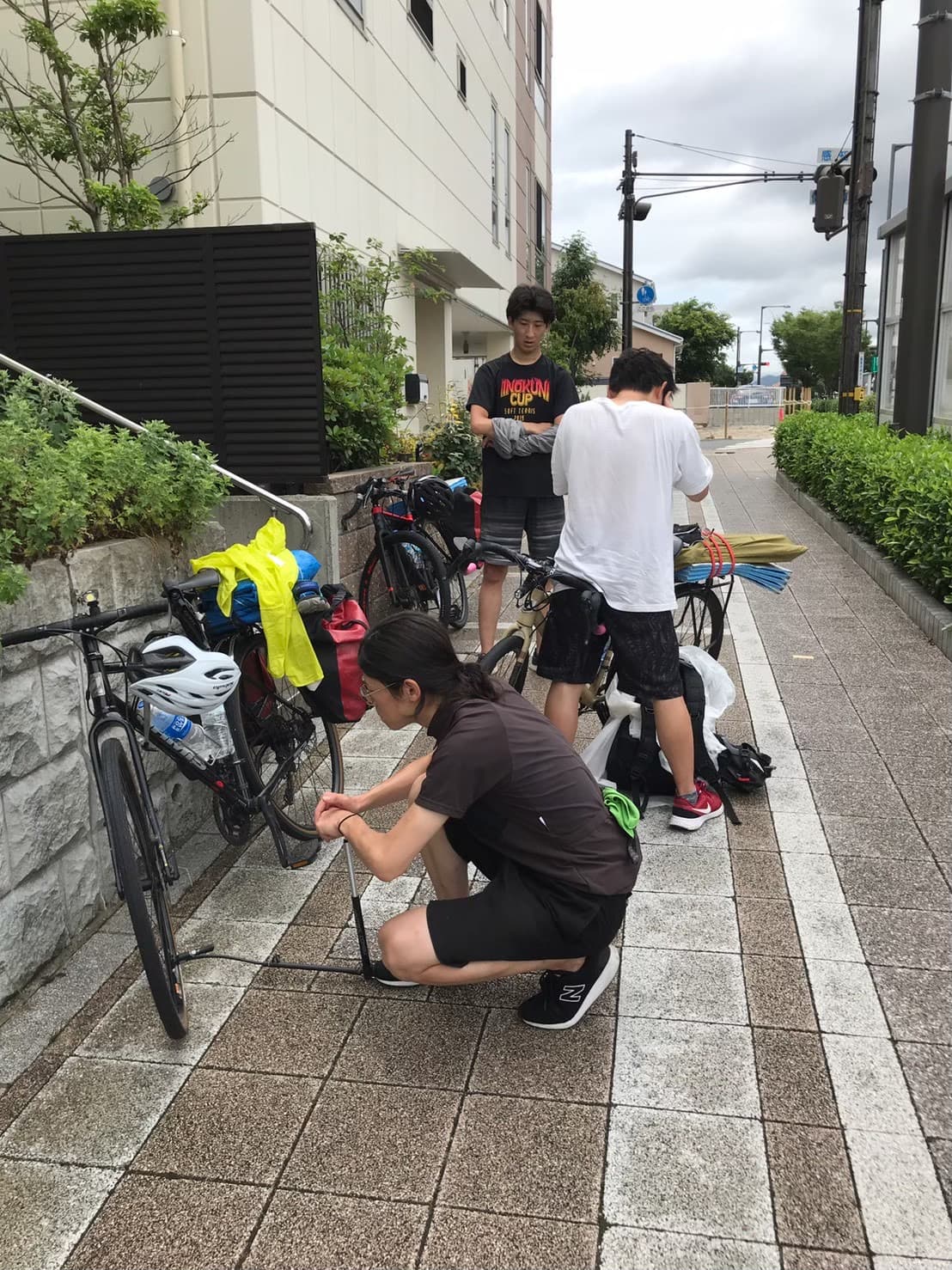 走ってたら雨が止みました⭐︎ 写真はパンク修理をする北岡隊員