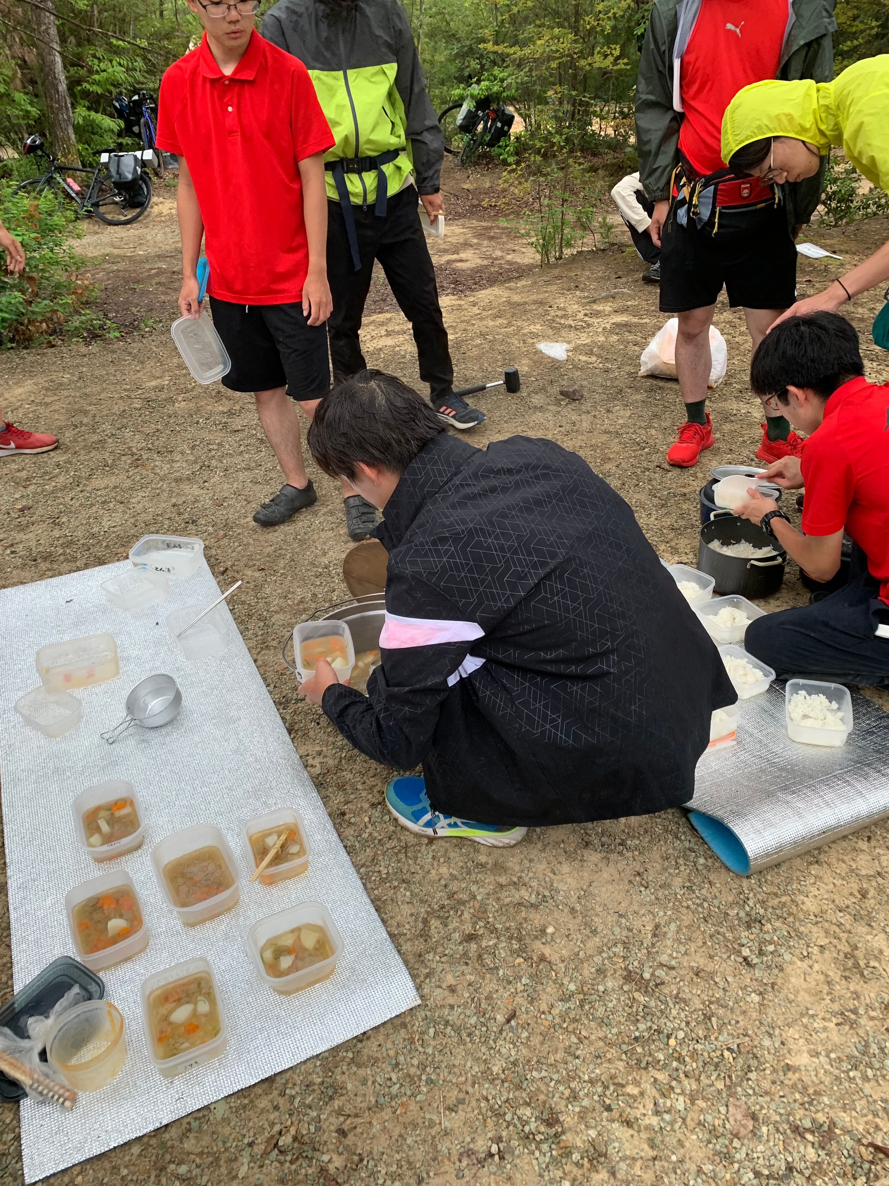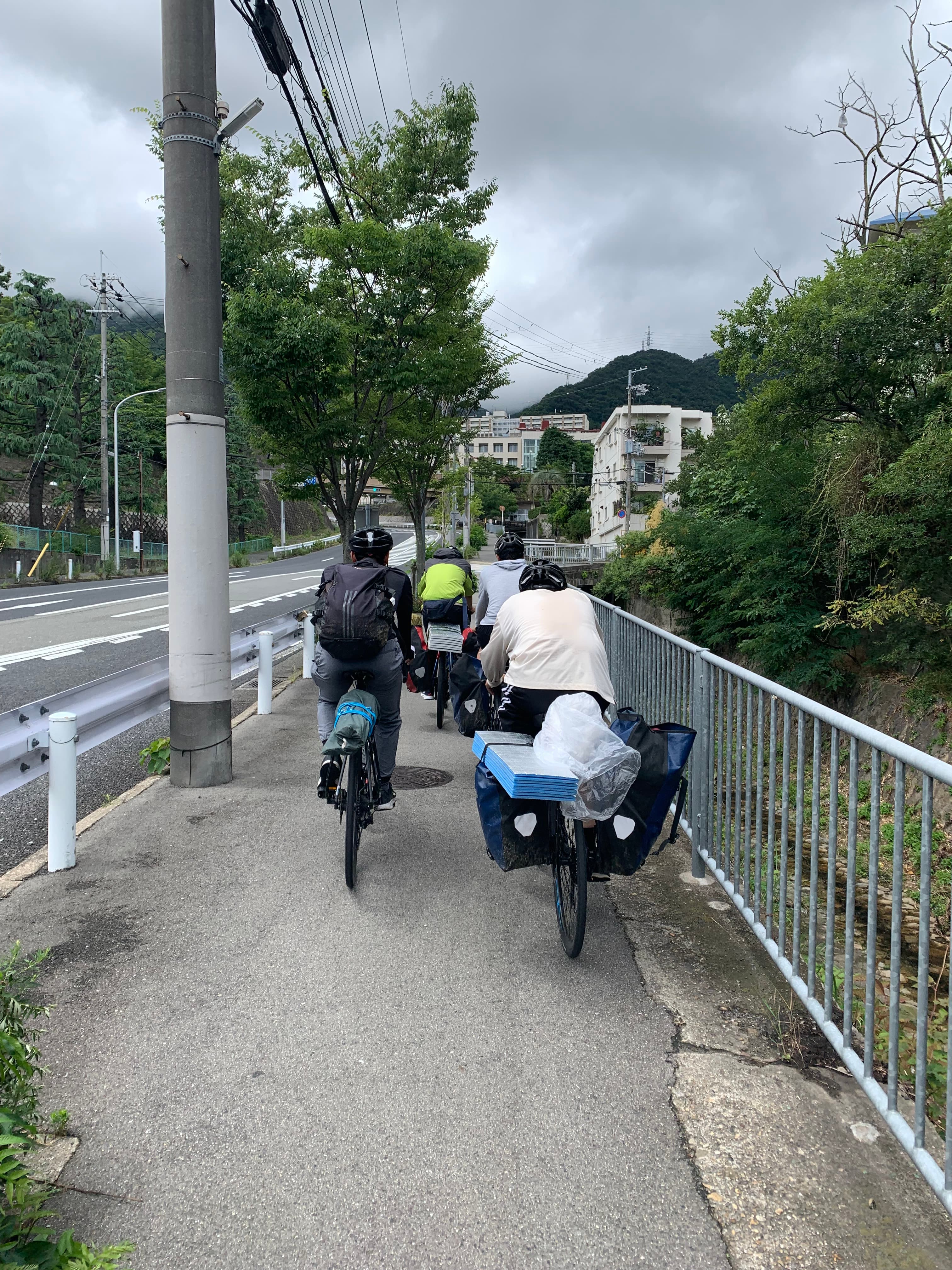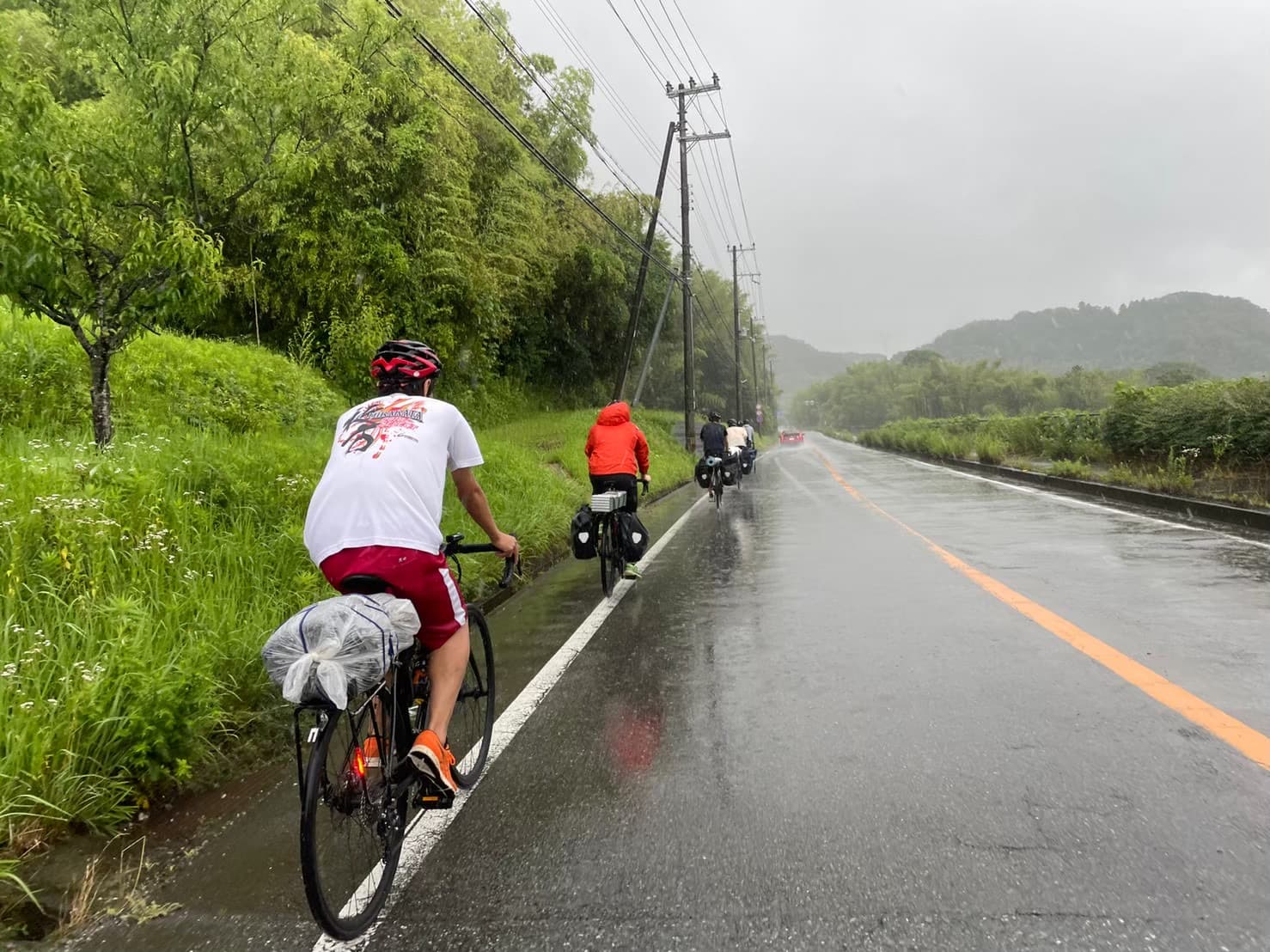 走ってたら雨が止みました⭐︎ 写真はパンク修理をする北岡隊員